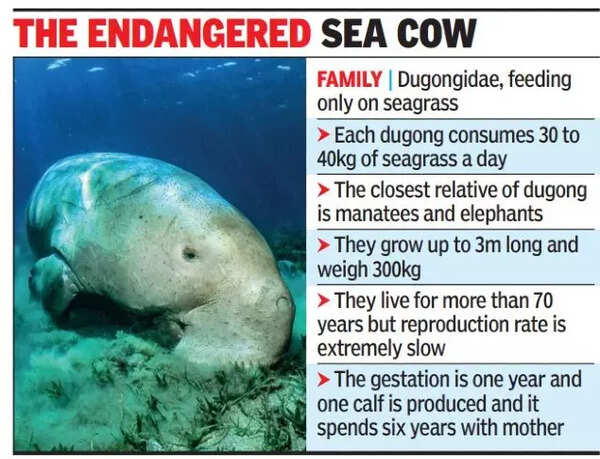 Dugongs are sentinel species for healthy seagrass ecosystems and provide vital ecological and economic services. Their decline in India — driven largely by fisheries bycatch, pollution and habitat degradation — signals broader coastal ecosystem stress. Legal protection and reserves are positive steps, but reversing decline requires stronger enforcement, pollution control, fisher engagement, habitat restoration and sustained scientific monitoring.
