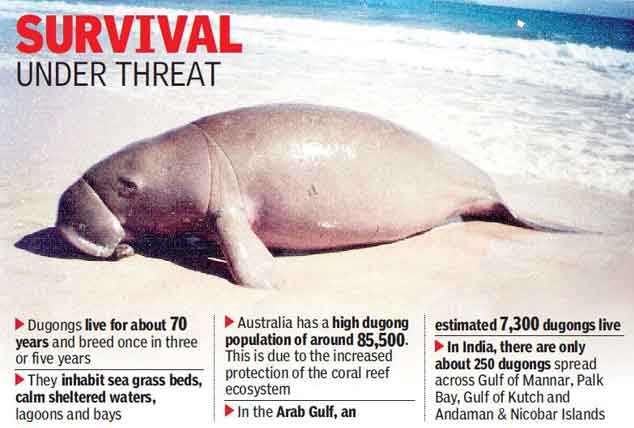- Recent Indian studies also report toxic metal accumulation in stranded dugongs. Now, the species is vulnerable to extinction due to fishing and pollution.