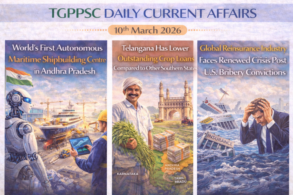 TGPSC Daily Current Affairs 10th March 2026 News at a Glance Telangana Has Lower Outstanding Crop Loans Compared to Other Southern States How India Seeks to Strengthen Global Diamond Governance India Submits 7th Biodiversity Report: Progress and Challenges for 2030 Targets Telangana Has Lower Outstanding Crop Loans Compared to Other Southern States Source: […]