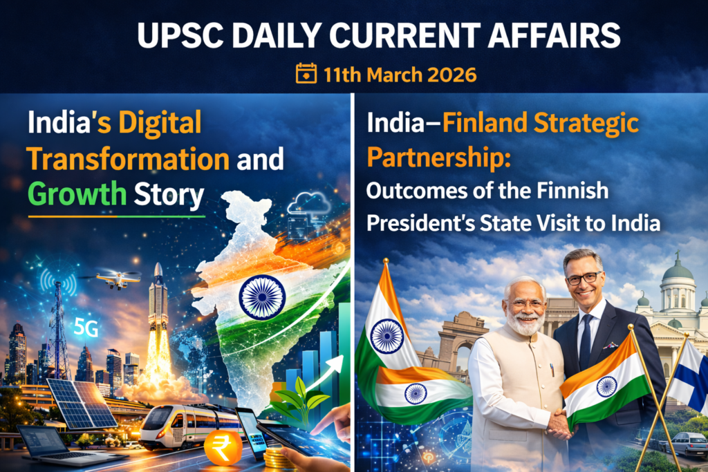 UPSC Daily Current Affairs 11th March 2026 News at a Glance India’s Digital Transformation and Growth Story India–Finland Strategic Partnership: Outcomes of the Finnish President’s State Visit to India India’s Digital Transformation and Growth Story Source: PIB Relevance: GS Paper II – International Relations – International institutions and global governance – India’s role […]