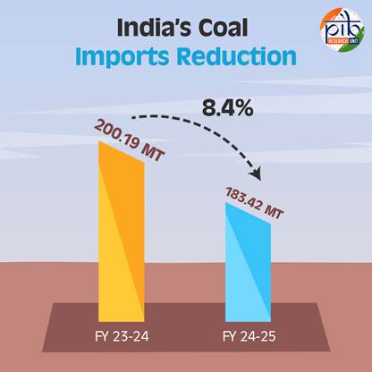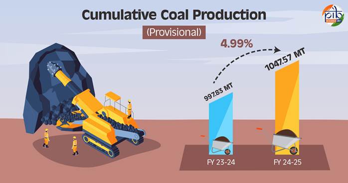 - India has achieved a historic milestone by surpassing one billion tonnes of coal production in FY 2024-25, with a 4.99% growth in output compared to the previous year.