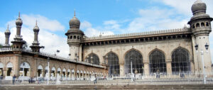 Makkah Masjid or Mecca Masjid, is a congregational mosque in Hyderabad, India. It is the largest mosque in the city, and one of the largest mosques in the country, with a capacity of 10,000 people. The mosque was built during the 17th century, and is a state-protected monument. It serves as the primary mosque for the Old City of Hyderabad,and is located close to the historic landmarks of Charminar, Chowmahalla Palace and Laad Bazaar.