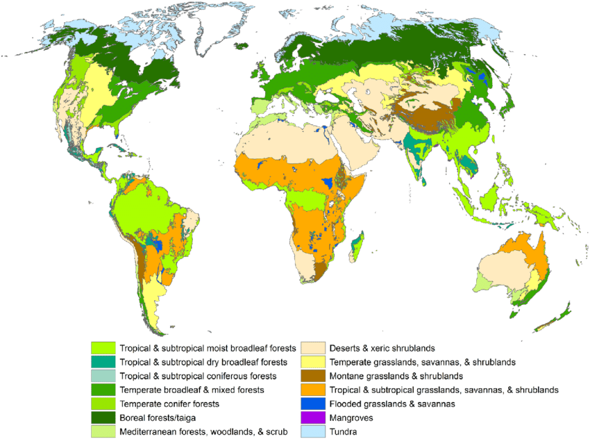 - Terrestrial ecosystems: Found on land, such as forests, grasslands, deserts, and tundra.
