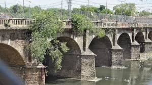 The Purana Pul is a historic bridge built in 1578 AD over the river Musi in Hyderabad, India. It is the first